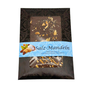 Salz-Mandeln Vollmilchschokolade mit karamellisierten Meersalz-Mandelsplittern, Kakao: 40% mindestens