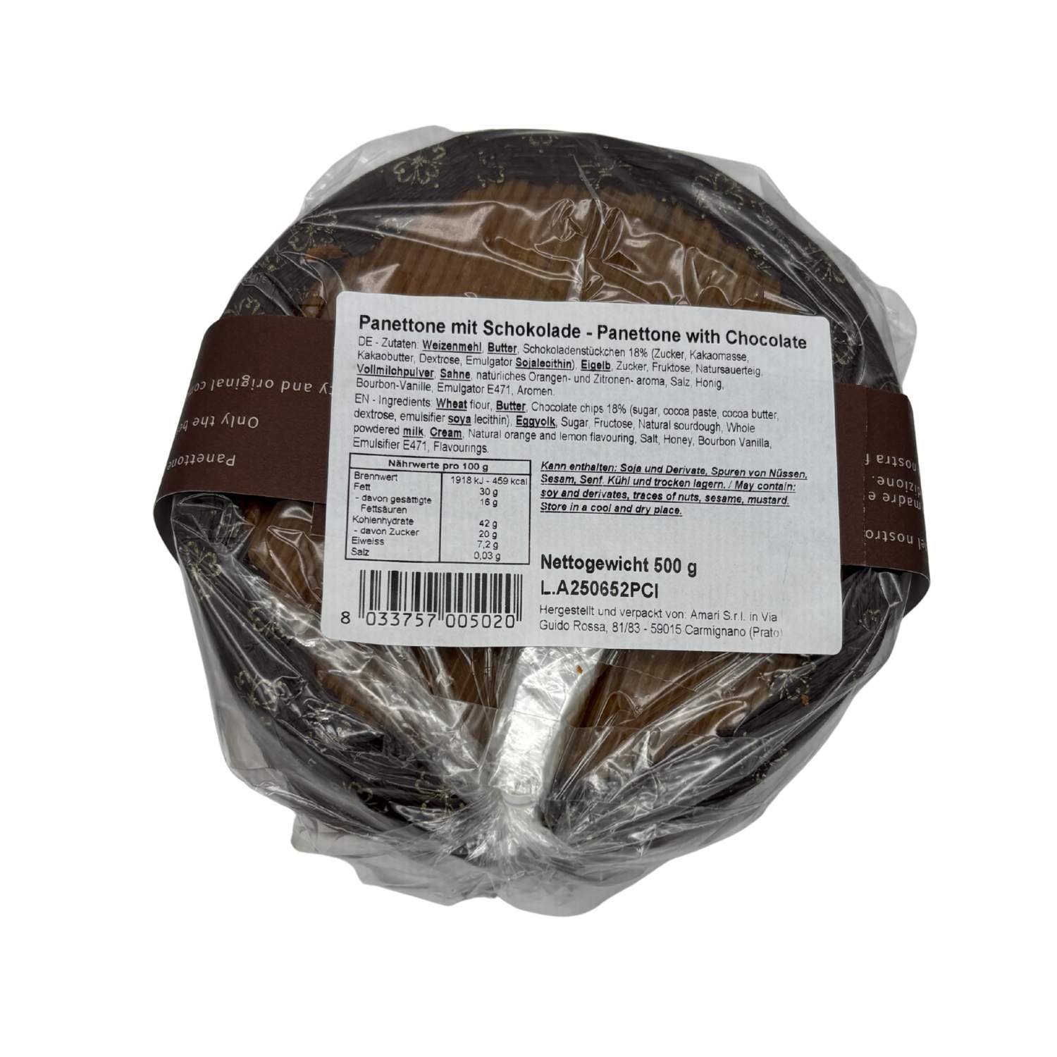 Dieser Panettone von Amari begeistert mit zartem Hefeteig, verfeinert durch cremige Schokoladenstückchen, die ihm eine besonders köstliche Fülle verleihen. Die Textur ist wunderbar locker und saftig, der Duft erinnert an Kakao, Butter und Vanille. Ein klassischer Panettone für alle, die feine Süße und italienische Handwerkskunst lieben.
