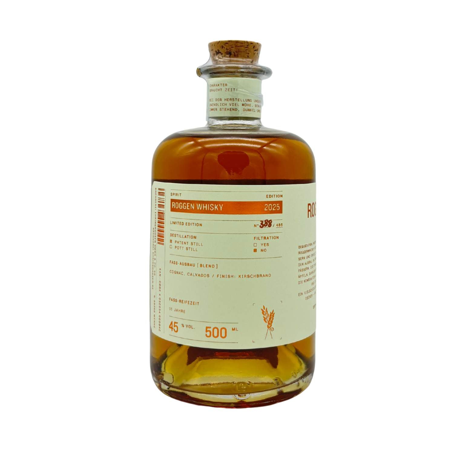 Dieser Whisky wird aus regionalem Roggen hergestellt, traditionell im Pot-Still-Verfahren destilliert und anschließend 11 Jahre in Eichenfässern gereift. Die lange Fasslagerung verleiht ihm Tiefe, Struktur und eine elegante Holzwürze. Ehringhausen steht für nachhaltige Handwerkskunst, kleine Batches und höchste Rohstoffqualität – all das spiegelt sich in diesem außergewöhnlichen Rye Whisky wider.