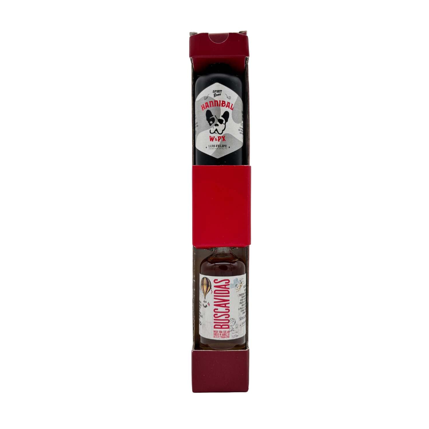 Dieses Probier-Set vereint zwei charakterstarke Spirituosen in praktischer Verkostungsgröße. Der Luis Felipe Buscavidas Whisky mit 40 % Vol. präsentiert sich weich, ausgewogen und zugänglich, während der Hannibal W&PX mit 35 % Vol. durch seine aromatische Tiefe und eine fein süß-würzige Stilistik überzeugt. Zusammen bietet das Set eine spannende Möglichkeit, unterschiedliche Stilrichtungen kennenzulernen und bewusst zu vergleichen.