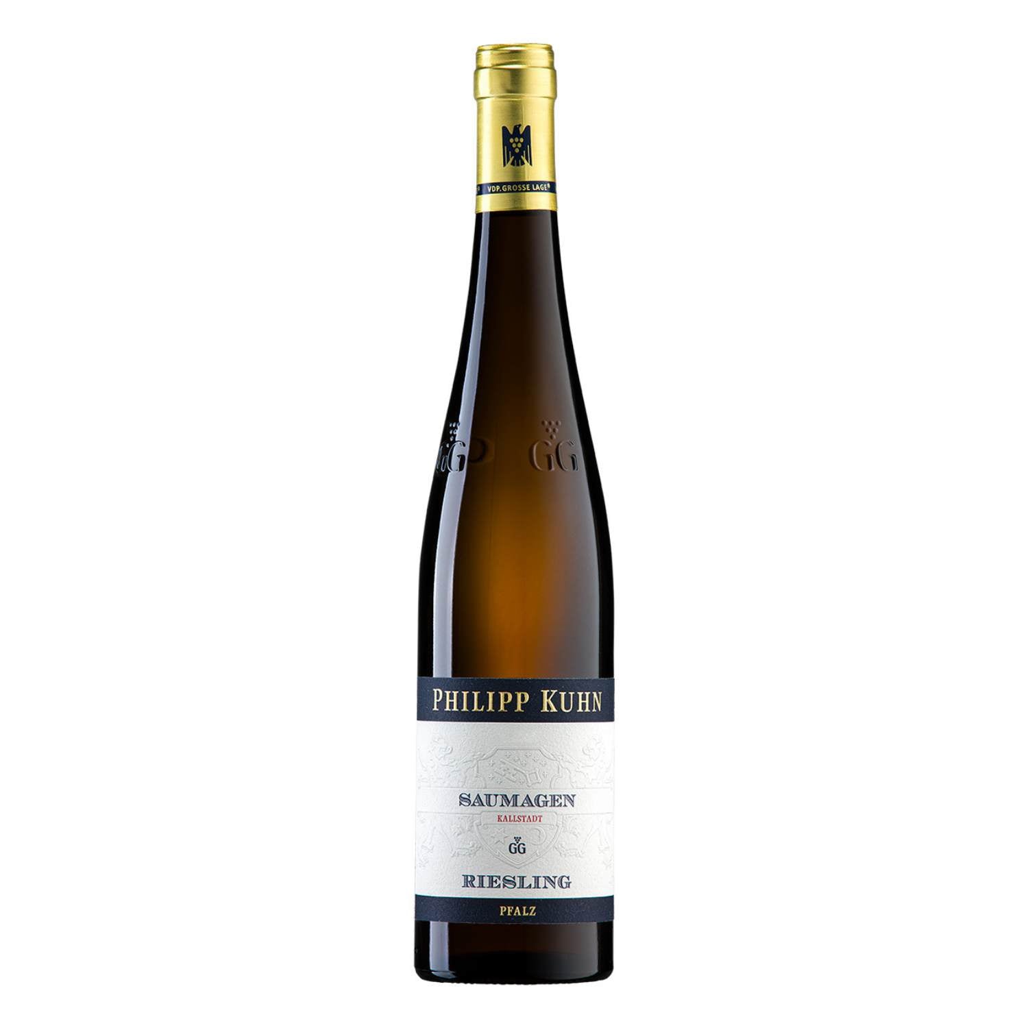 Die Trauben stammen aus der legendären Lage Kallstadter Saumagen, deren karger Kalksteinfels und warme Südexposition ideale Bedingungen für langlebige Rieslinge schaffen. Nach selektiver Handlese werden die Trauben schonend gepresst und im großen Holzfass auf der Feinhefe ausgebaut. Der Stil: kompromisslos trocken, glasklar, mit mineralischem Rückgrat und großem Reifepotenzial.