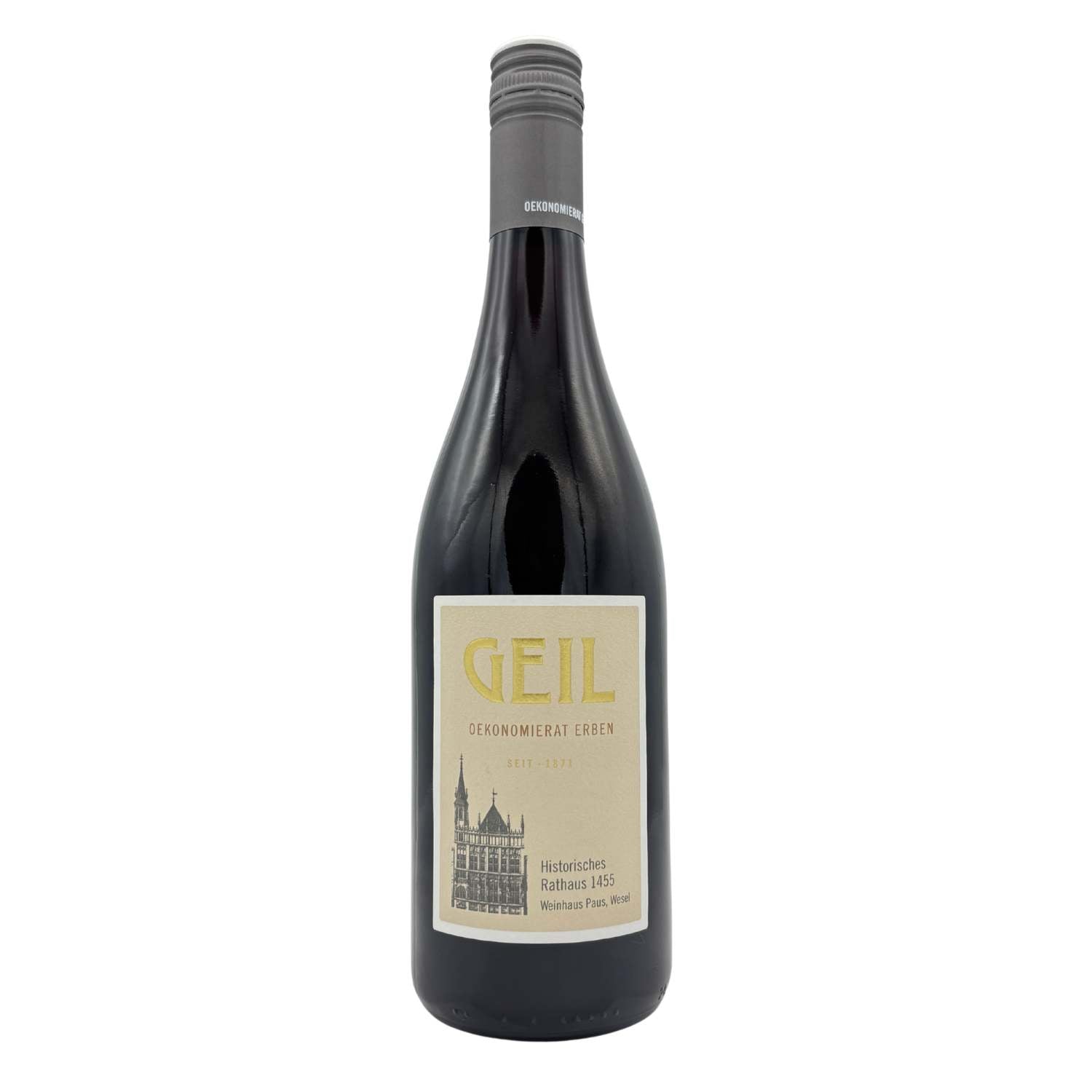 Aufgrund der engen Kooperation mit diesem Weingut haben wir, neben den beiden "Weseler Esel"-Weinen (Blanc de Noir und Roséwein) auch im roten Bereich eine Eigenausstattung mit Bezug auf die Stadt Wesel kreiert. Und was passt da besser als das Weseler Rathaus - eines der wichtigste Bauten und somit auch das Wahrzeichen der Stadt.